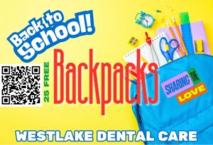 From August 11th through 22nd, Westlake Dental Care is offering free backpacks filled with essential school supplies during regular business hours. Each backpack comes packed with the supplies students need to start their school year successfully, eliminating the stress and financial burden many families face when shopping for school essentials.